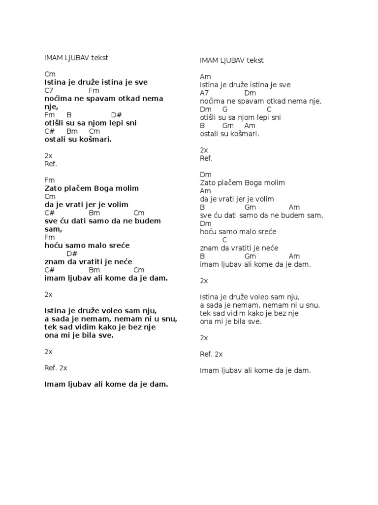 Chords For Pedja Medenica Imam Ljubav Ali Kome Da Je Dam Lyrics
